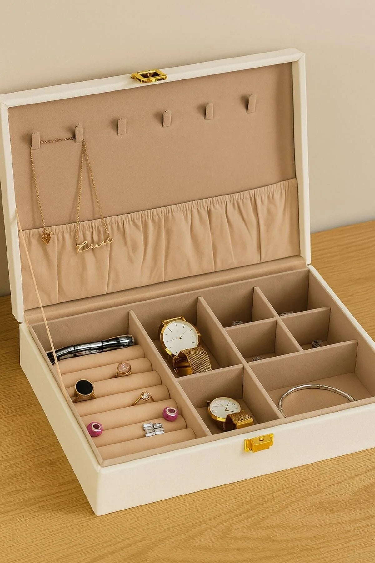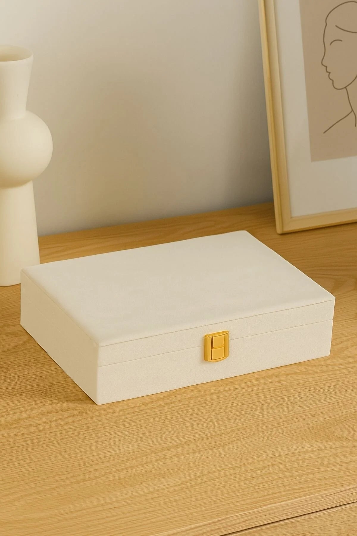 Takı Aksesuar Bijuteri Mücevher Organizer Takı Saklama Kutusu Bej 18 X 28 X 7 Cm